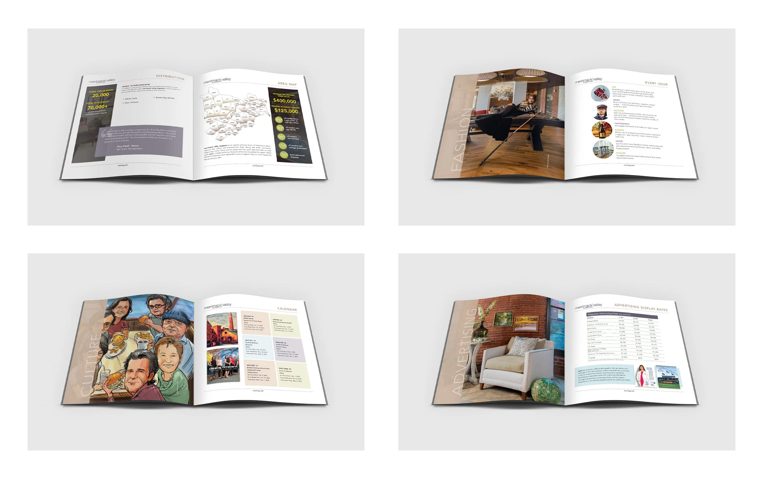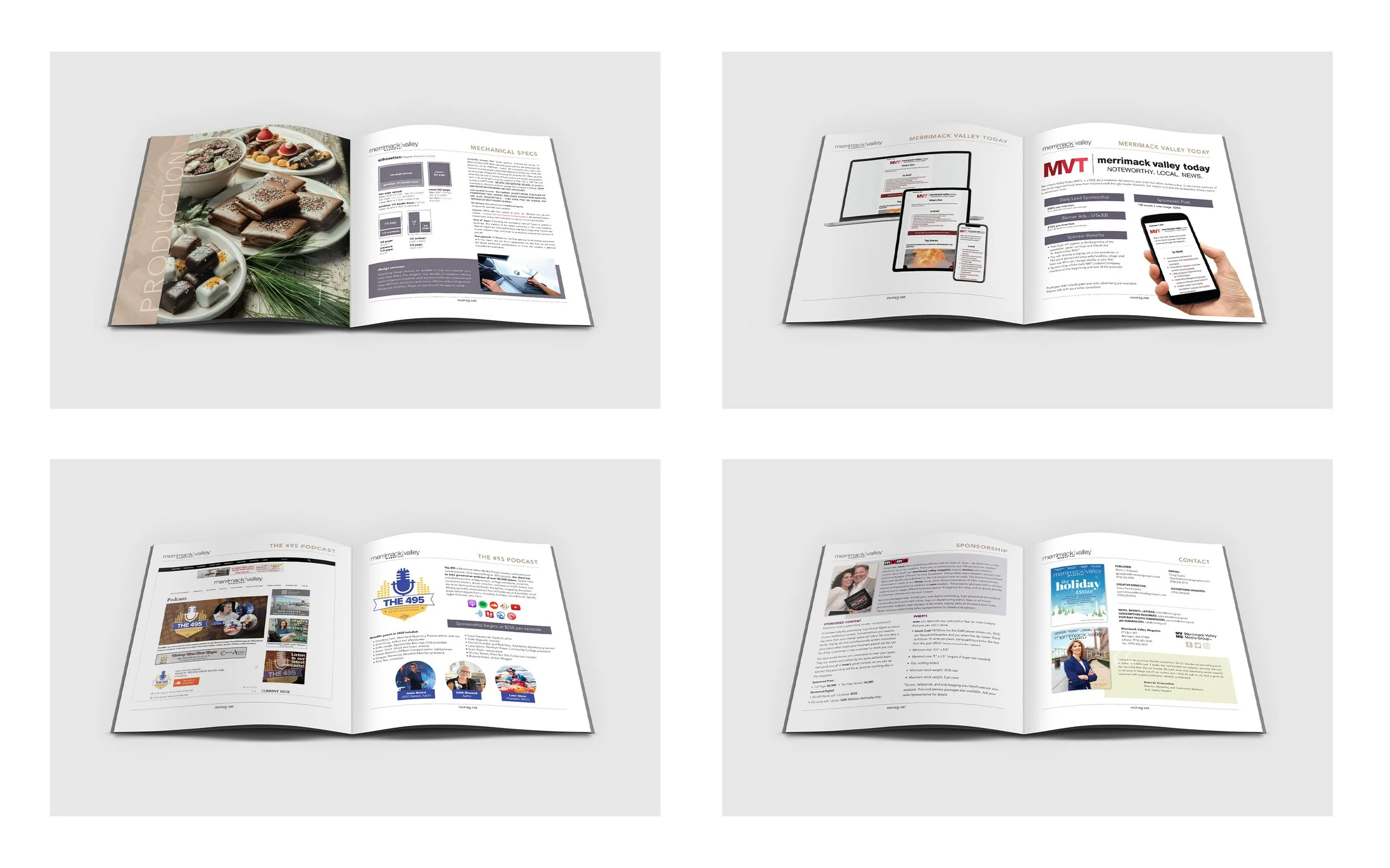 Merrimack Valley Media Group Rate Book Business Cards McCue A4 Overview Sheet Lowell Grotto Restoration Brochure Granite State Burger Challenge Marketing Material Postcards The Farm Bar & Grille Menu Design